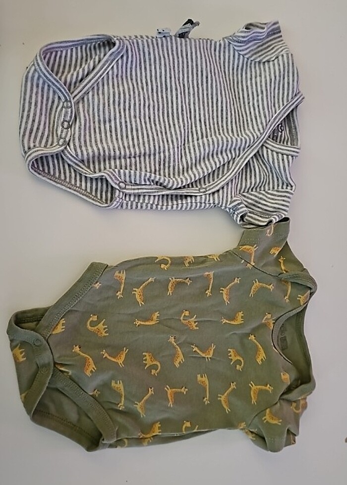 1-3 ay ve 6 ay bedenler. Çizgili organicera markalı. Diğeri de e bebekten alındı tekli de olur fiyat 30 tl.