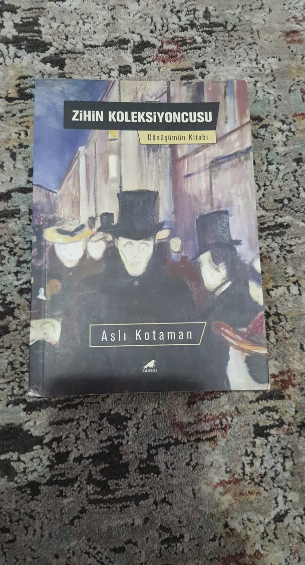Aslı Kotaman'ın Zihnin Koleksiyoncusu kitabı, dönüşüm temalarını işleyen bir romandır. Kapakta koyu şapkalı figürler yer alır.