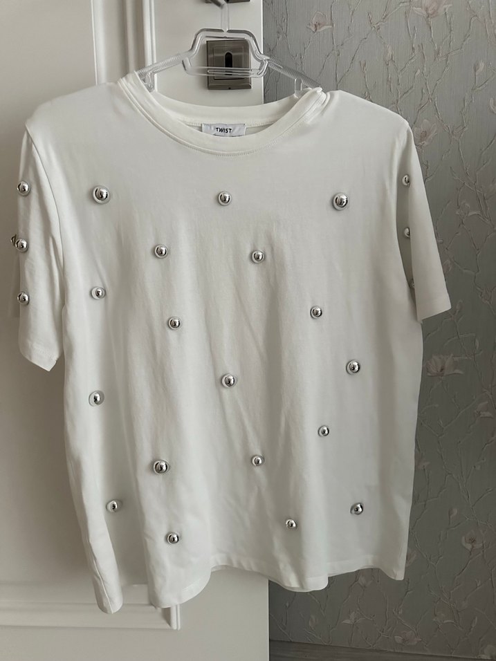 Zımbalı Beyaz Kadın Tişört
