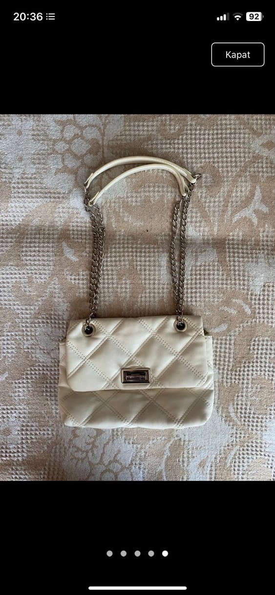 Zincir Askılı Beyaz Deri Kadın Çanta
