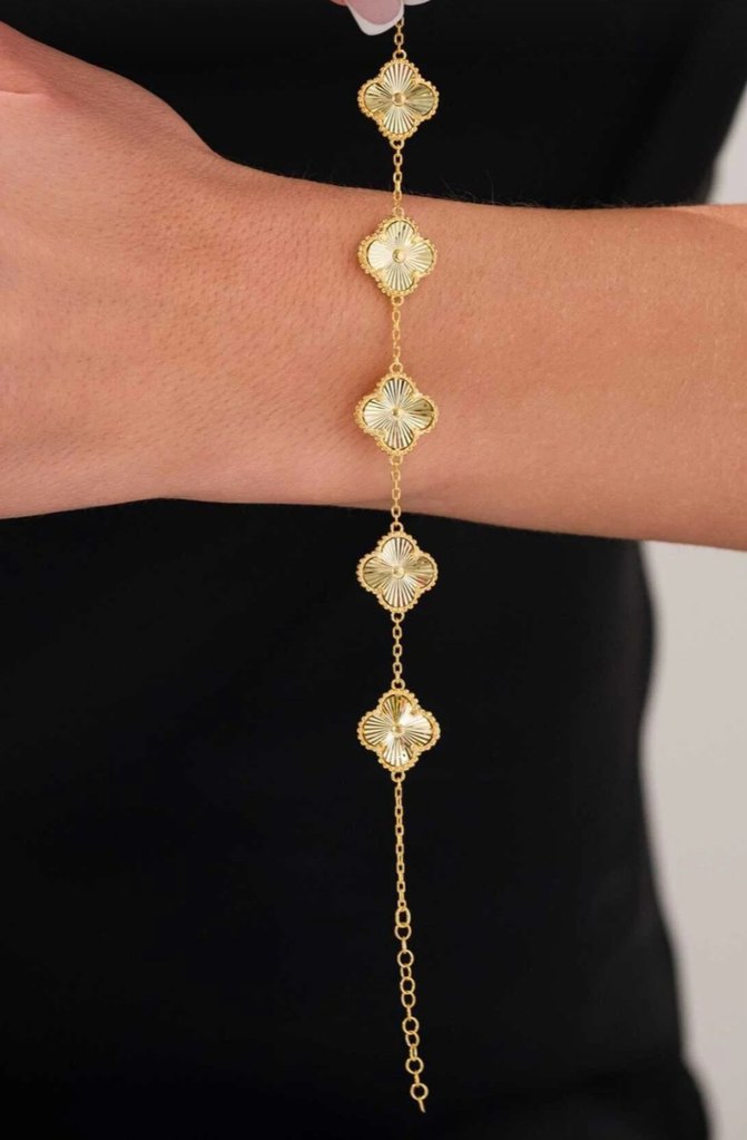Zincir Detayl yonca model ı Altın Renk Kadın Bileklik