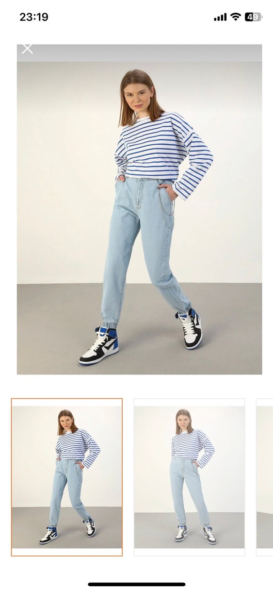 Zincir Detaylı Açık Mavi kot Pantolon s beden etiketli