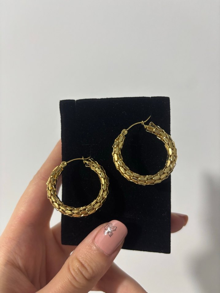 Zincir Detaylı Altın Desenli Halka Küpe
