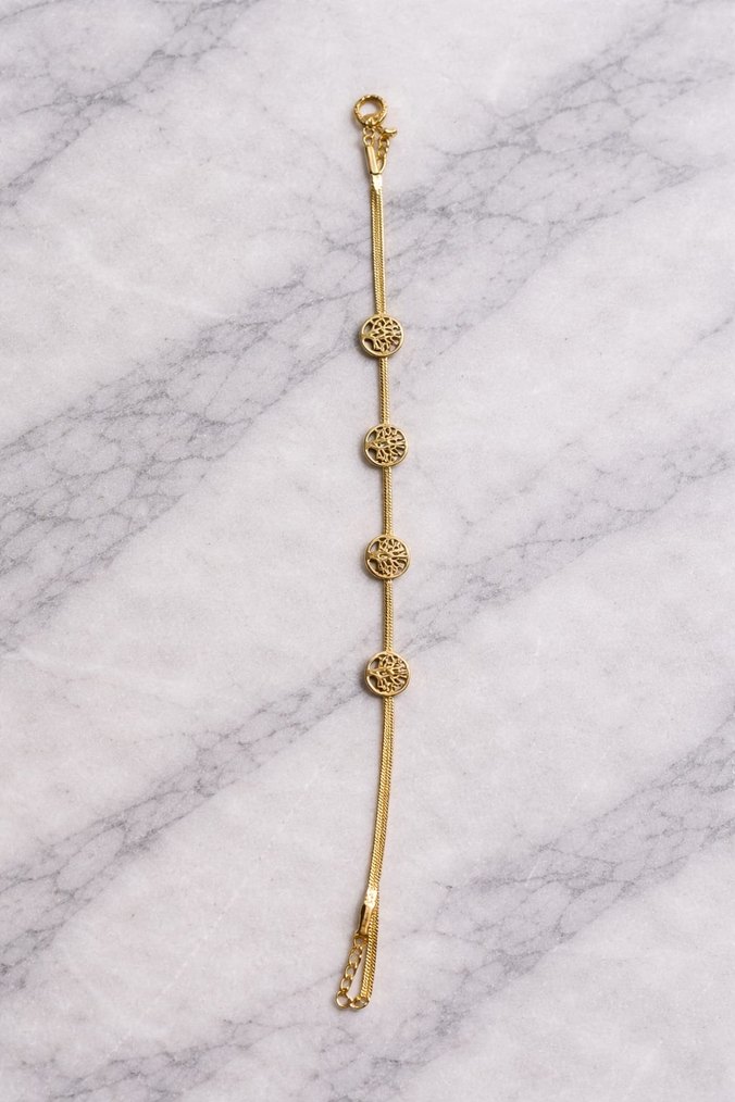 Zincir detaylı, parlak yüzeyli altın kadın bileklik. Minimalist ve modern klasik tarzda, günlük kullanıma uygun. ✨