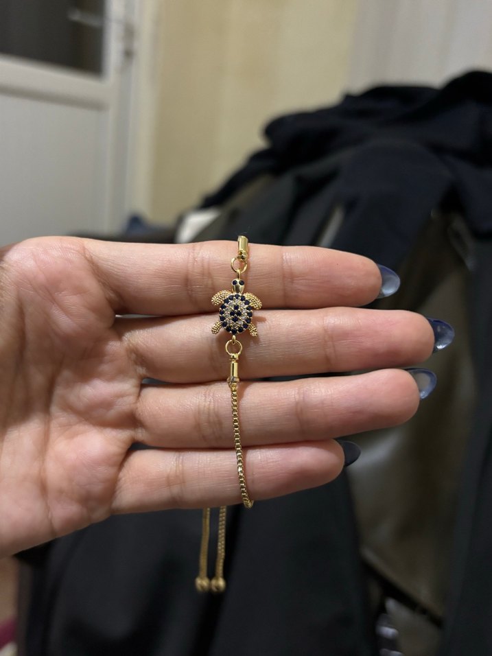 Zincir Detaylı Altın Kaplama Kaplumbağa Bileklik