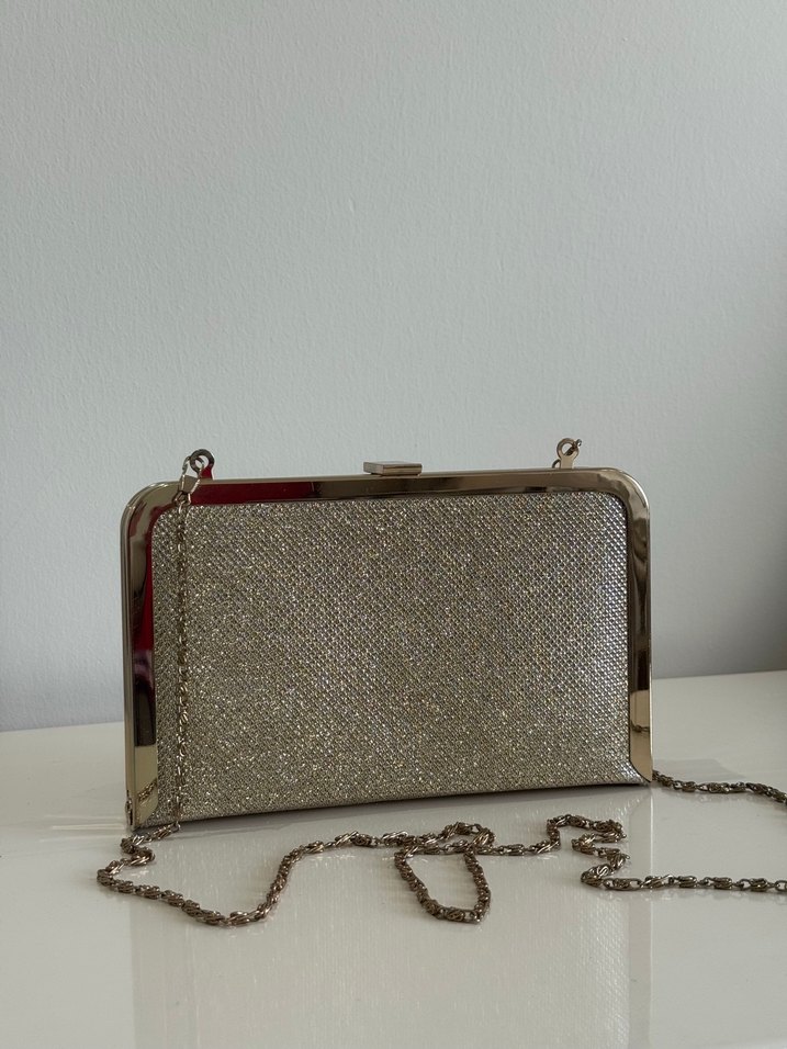Parlak altın renkli ve zincir detaylı kadın clutch çantadır. Ürünün markası yoktur, eskiden bir butikten satın almıştım. Birkaç kez kullandım ancak hiçbir sorunu vs bulunmamaktadır. Dilediğiniz soruyu sorabilirsiniz seve seve yardımcı olurum