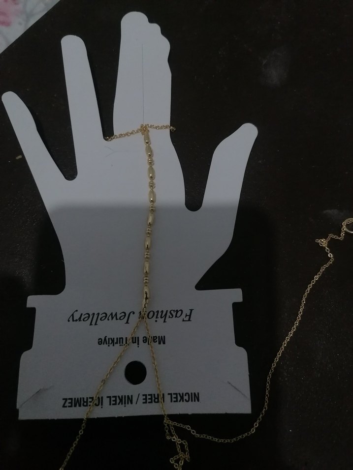 Zincir detaylı, altın renkli kadın el zinciri. Minimalist ve bohem tarzda, günlük kullanıma uygun parlak yüzeyli retro aksesuar. ✨