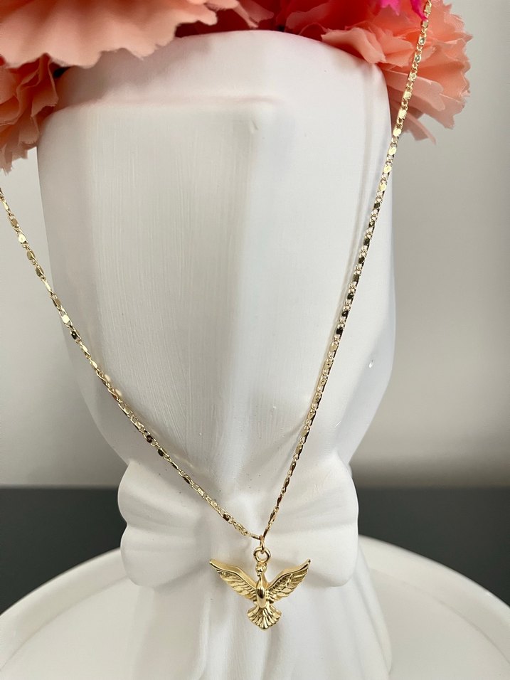 Altın renginde, zincir detaylı ve minimal kuş figürlü kolye. Normal midi uzunlukta, günlük kullanım için uygun, çağdaş ve klasik şıklıkta. ✨