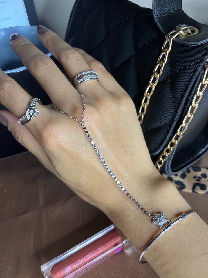 Zincir Detaylı Altın Rengi Minimalist El Zinciri