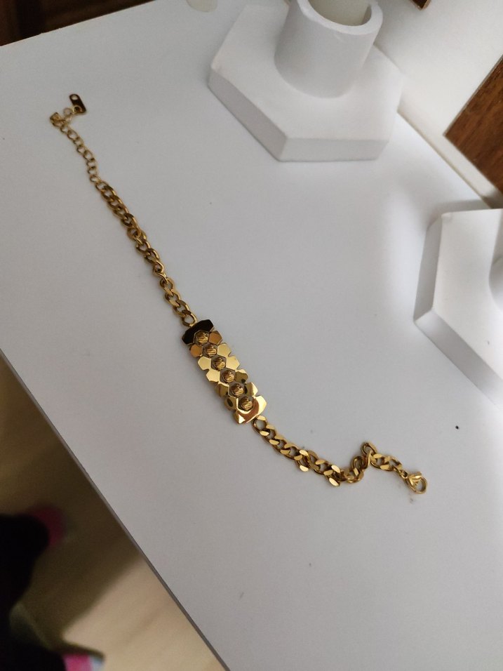 Çekil bileklik. Parlak altın renkli zincir detaylı, yılan desenli kadın bilekliği, günlük kullanıma uygun minimal bir tasarıma sahiptir.