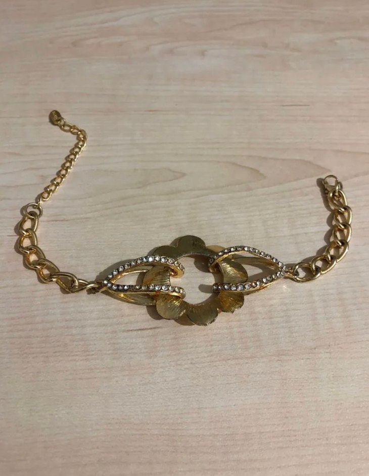 Zincir Detaylı Altın Rengi Yılan Desenli Bileklik