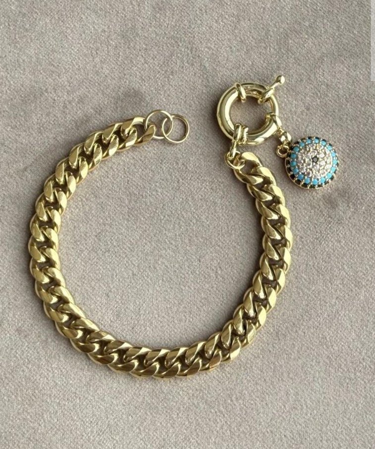 Parlak altın renkli zincir detaylı bileklik, yılan desenli küçük bir charm ile bohem tarzını yansıtıyor. Günlük kullanıma uygundur. ✨çeliktir kararma yapmaz