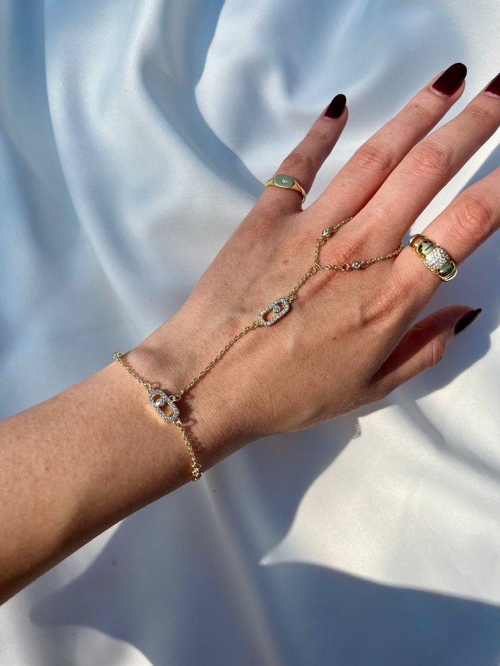 Minimalist ve bohem tarzı yansıtan zincir detaylı,altın renk kadın Şahmeran