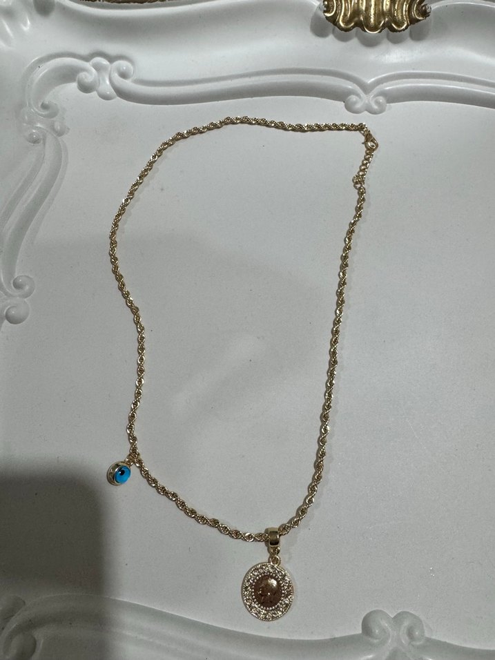Zincir Detaylı Altın Renk Bohem Kolye