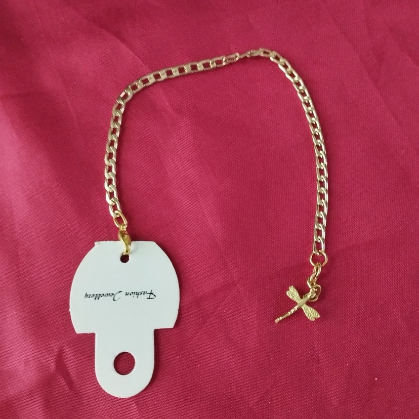 Altın renkli, zincir detaylı ve yusufçuk figürlü kadın bileklik, 19 cm boyunu ayarlanabilir özel tasarım.