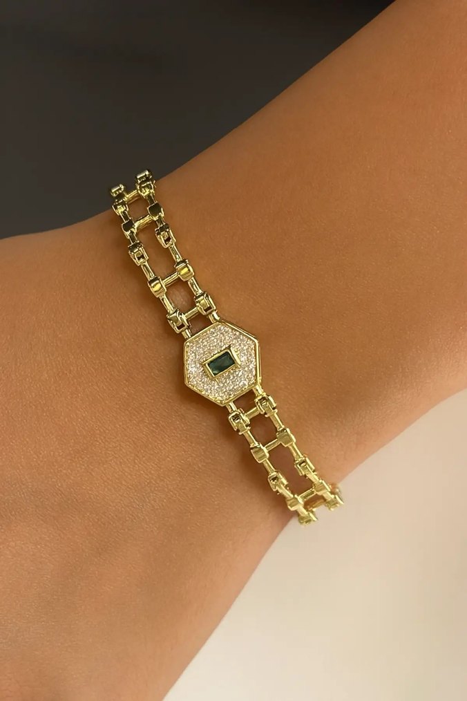 Zincir Detaylı Altın Renk Kadın Bileklik