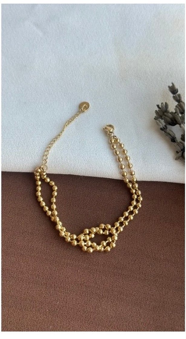 Parlak altın renkli, zincir detaylı kadın bileklik. Minimalist ve sokak stiline uygun, günlük kullanıma ideal. ✨