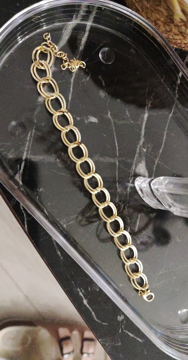 Parlak altın renkli, zincir detaylı kadın bileklik. Klasik ve çağdaş tarzı günlük kullanıma uygun şekilde birleştirir. ✨