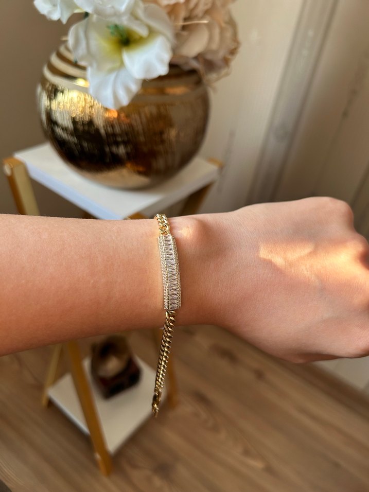 Zincir Detaylı Altın Renk Kadın Bileklik