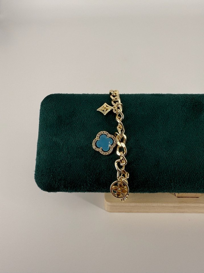 Nakış detaylı, zincir tasarımlı altın renk bileklik. Bohem tarzıyla günlük kullanıma uygun, klasik zarafeti Paris esintisiyle yansıtıyor. ✨