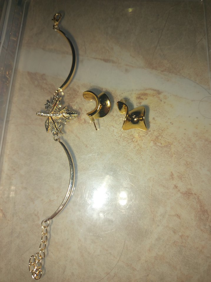 Zincir detaylı, parlak altın renkli kadın ear cuff seti, yılan deseniyle günlük kullanıma uygun.