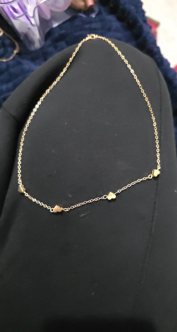 Altın renkli kadın kolye, zincir detaylı ve küçük kalp figürlüdür. Midi uzunlukta, minimalist ve günlük kullanıma uygundur.