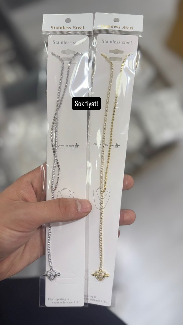 Paslanmaz çelikten yapılmış, zincir detaylı altın renk kadın kolye. Günlük kullanım için normal uzunlukta, minimalist tarzda. ✨