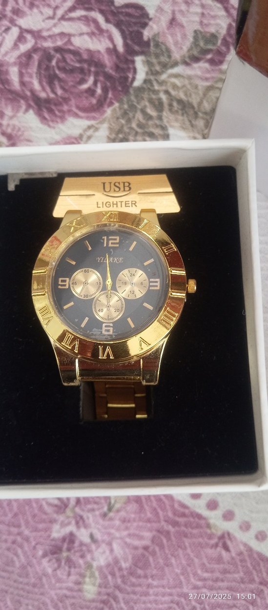 Parlak altın renkli, zincir detaylı ve yılan desenli Çakmaklı şarjlı saat. Günlük kullanıma uygundur. ⌚