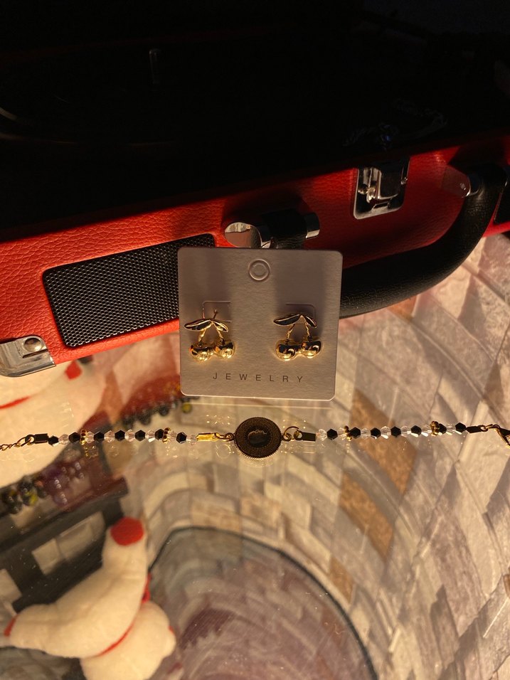 Günlük kullanıma uygun, zincir detaylı altın renk kadın takı seti. Minimalist stil ve baskılı desenler içerir. Küpe ve bileklikten oluşur. ✨