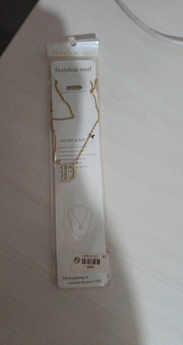 Altın rengi, zincir detaylı ve midi uzunlukta paslanmaz çelikten yapılmış kolye. Üzerinde baskılı harf detayı bulunur ve günlük minimalist tarz için uygundur. ✨