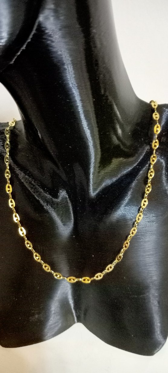 Altın renginde, zincir detaylı ve parlak yüzeye sahip midi uzunlukta kolye. Minimalist ve klasik şıklık için günlük kullanıma uygun. ✨14k xuping çelik kolye
