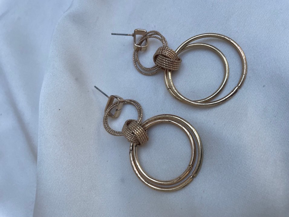 Zincir detaylı, parlak altın renk midi küpeler. Minimalist ve bohem tarzıyla romantik akşamlar için uygundur.✨ Az kullanıldı Marka temsili