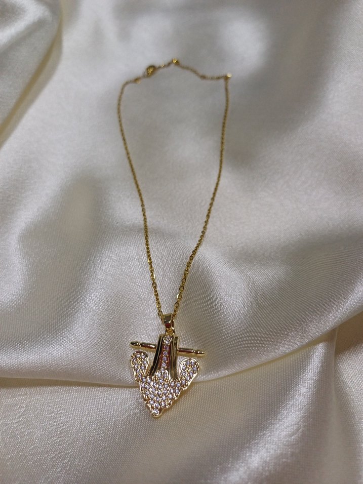 Kısa uzunlukta, zincir detaylı altın renkli kolye, yılan desenli kolye ucu ile günlük kullanıma uygun klasik ve gösterişli tarzı yansıtıyor.