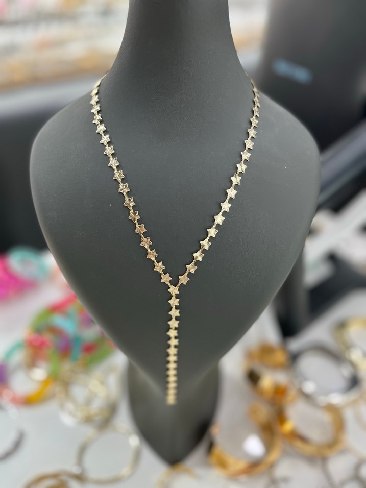 Günlük kullanım için uygun, zincir detaylı ve uzun, altın renkli çağdaş ve minimalist tarzda kolye. Y kolye Zara’nın modeli