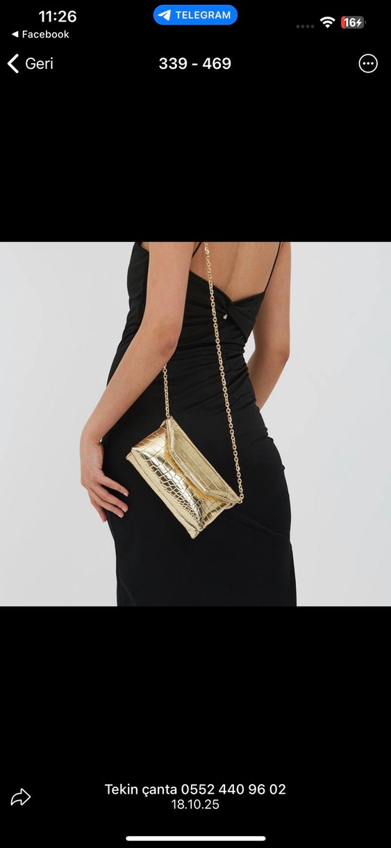 Parlak altın renkli deri çanta, yılan desenli ve zincir detaylıdır. Romantik buluşmalar için çağdaş ve cesur bir seçimdir.