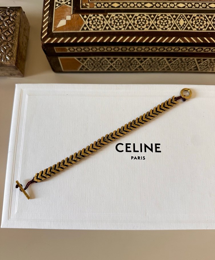 Altın renkli, zincir detaylı ve nakış desenli bohem tarz bileklik. Romantik akşamlar için uygun, Paris modasından ilham almıştır.✨