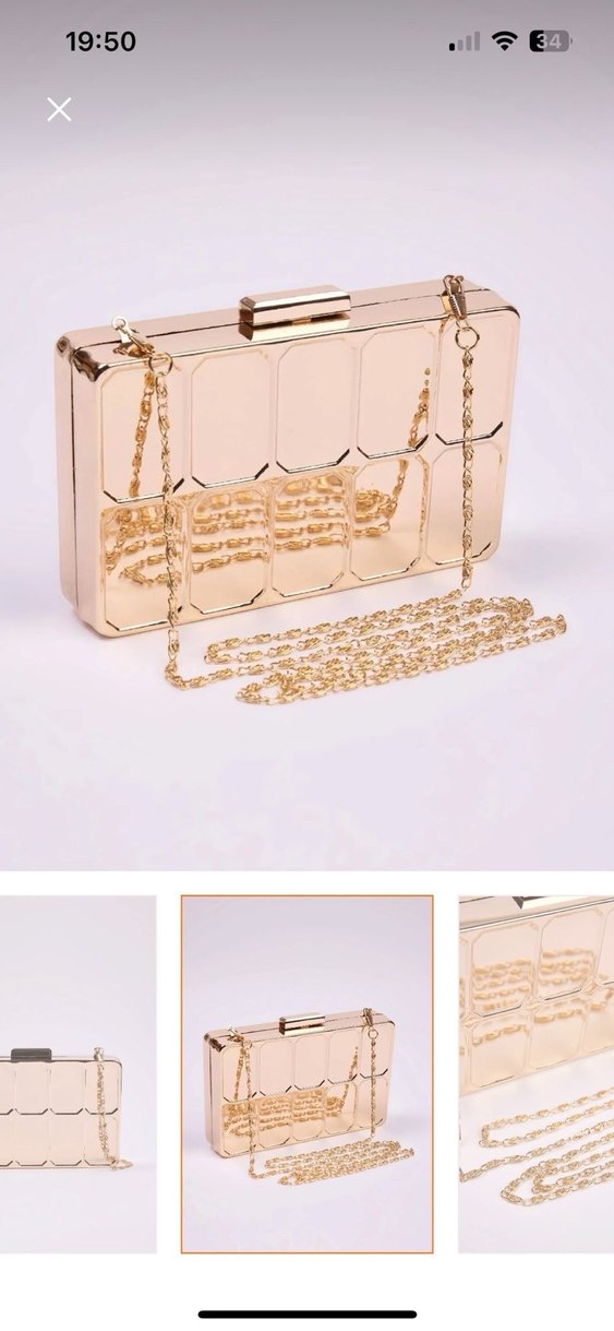 Zincir Detaylı Altın Renkli Kadın Abiye Çanta