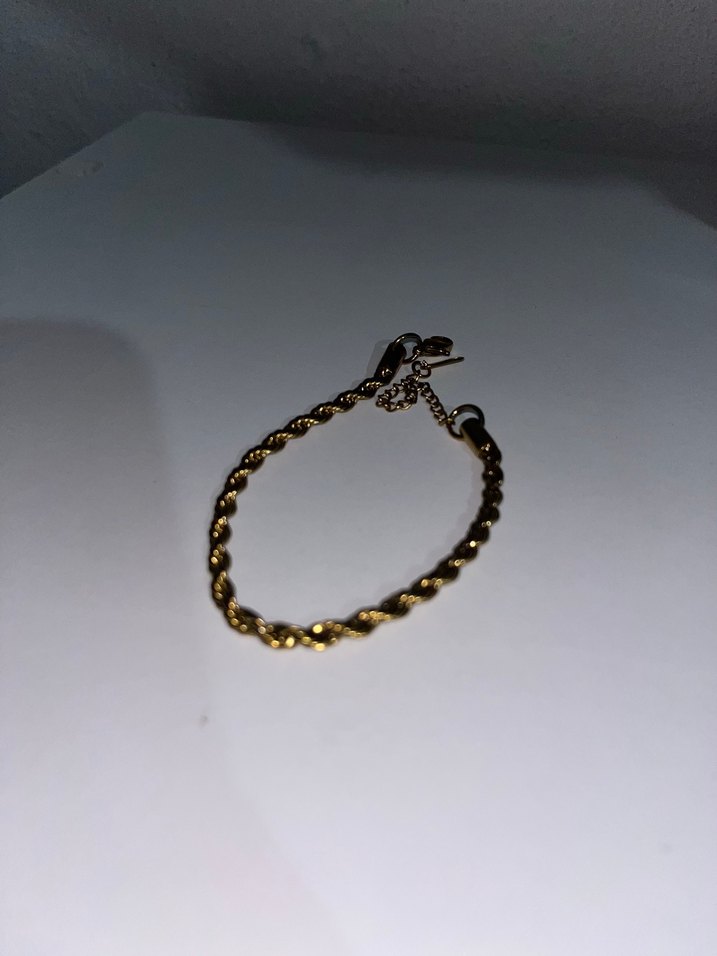 Zincir detaylı, yılan deseni dokulu altın renkli kadın bileklik, günlük kullanıma uygun.