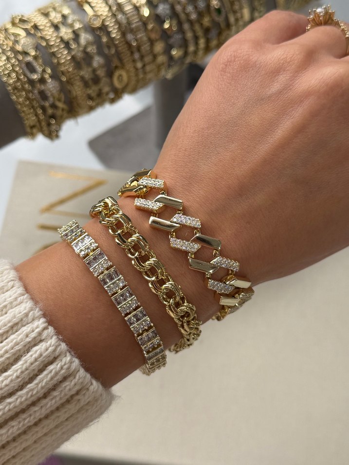 Zincir detaylı, altın renkli kadın bileklik, gündelik ve trend sokak stili için uygundur. ✨