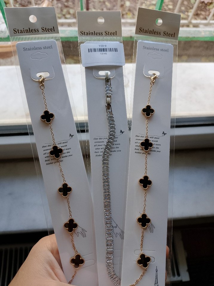 Paslanmaz çelikten yapılmış, zincir detaylı ve siyah baskılı altın renkli kadın bileklikleri. Sokak stili ve günlük kullanıma uygundur. ✨adet fiyatıdır