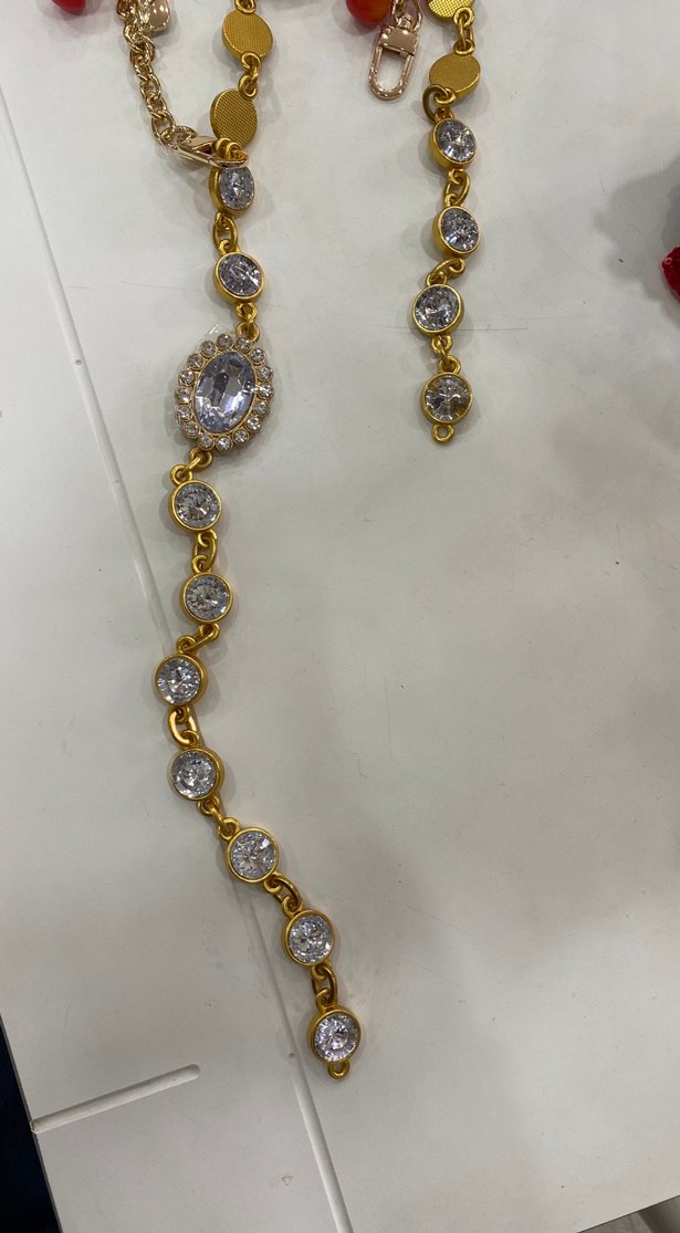 Zincir detaylı, altın renkli kadın çanta sapı. Düğün ve klasik şıklık için uygun.