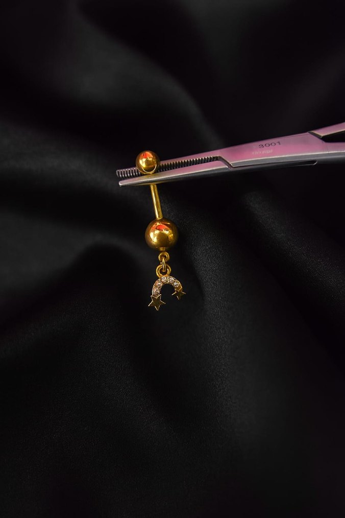 Zincir Detaylı Altın Renkli Kadın Göbek Piercing