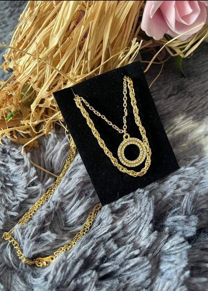 Zincir detaylı, altın renkli bohem ve klasik zarafet tarzında günlük kullanıma uygun kolye. FİYATLAR SABİTTİR. Lütfen indirim istemeyiniz.