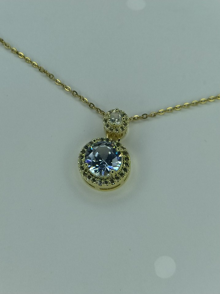 Zincir detaylı, altın renkli ve renkli taşlı midi uzunlukta modern klasik tasarıma sahip kolye. ✨