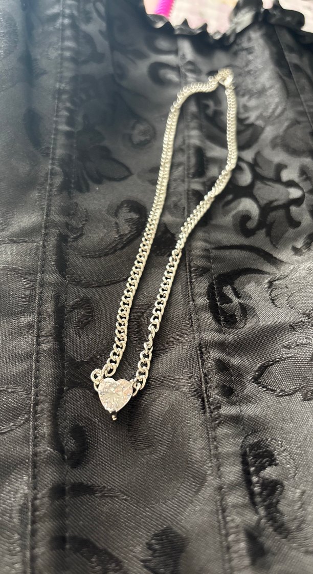 Zincir detaylı, kalp şeklinde uçlu altın renkli midi kolye. Parlak yüzeyi ve yılan desenli dokusuyla romantik buluşmalara uygun.