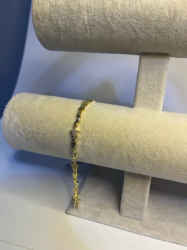 Parlak altın renkli, zincir detaylı ve yılan deseni olan bu bileklik, klasik zarafetle minimalist çağdaş stili birleştirir. Günlük kullanıma uygun.