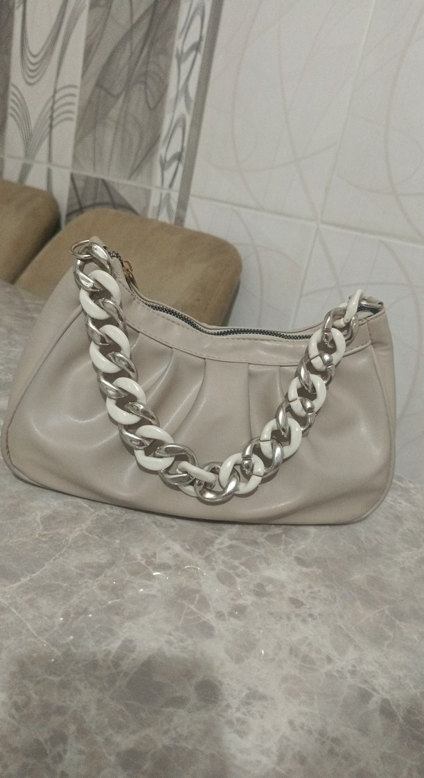 Zincir Detaylı Bej Deri Çanta