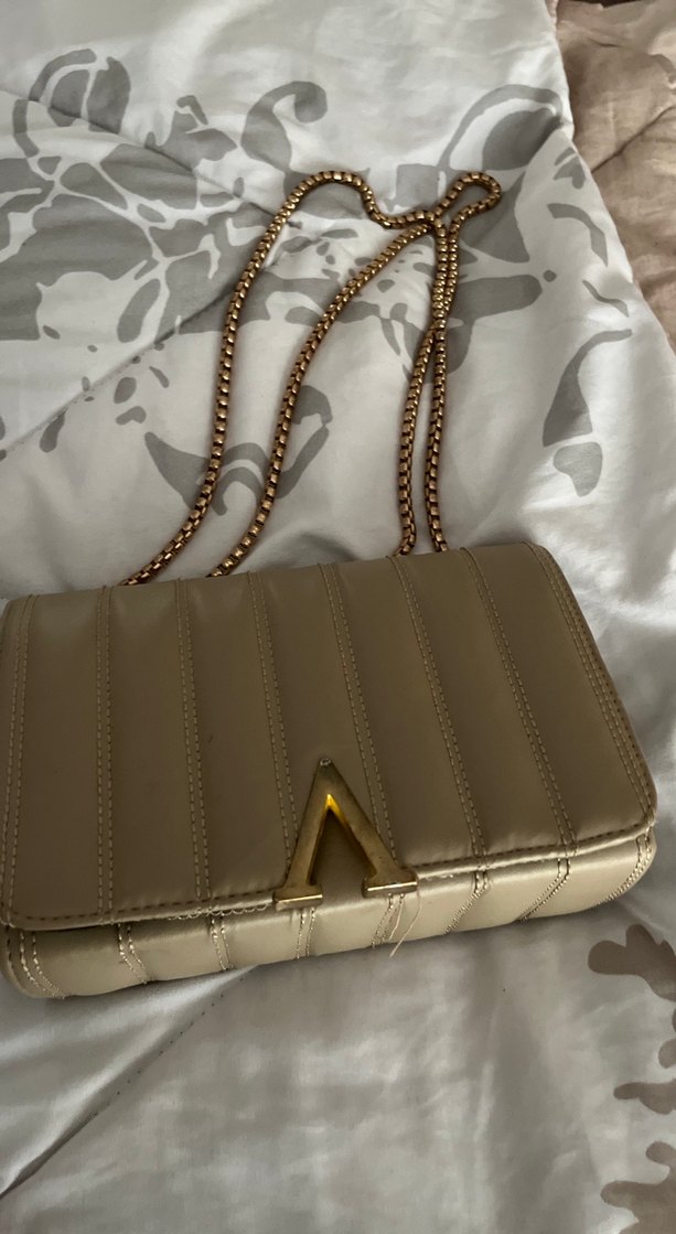 Bej renkli, parlak deri kadın çanta, zincir detaylarıyla modern klasik stil ve Paris şıklığını yansıtıyor. Günlük kullanıma uygun.