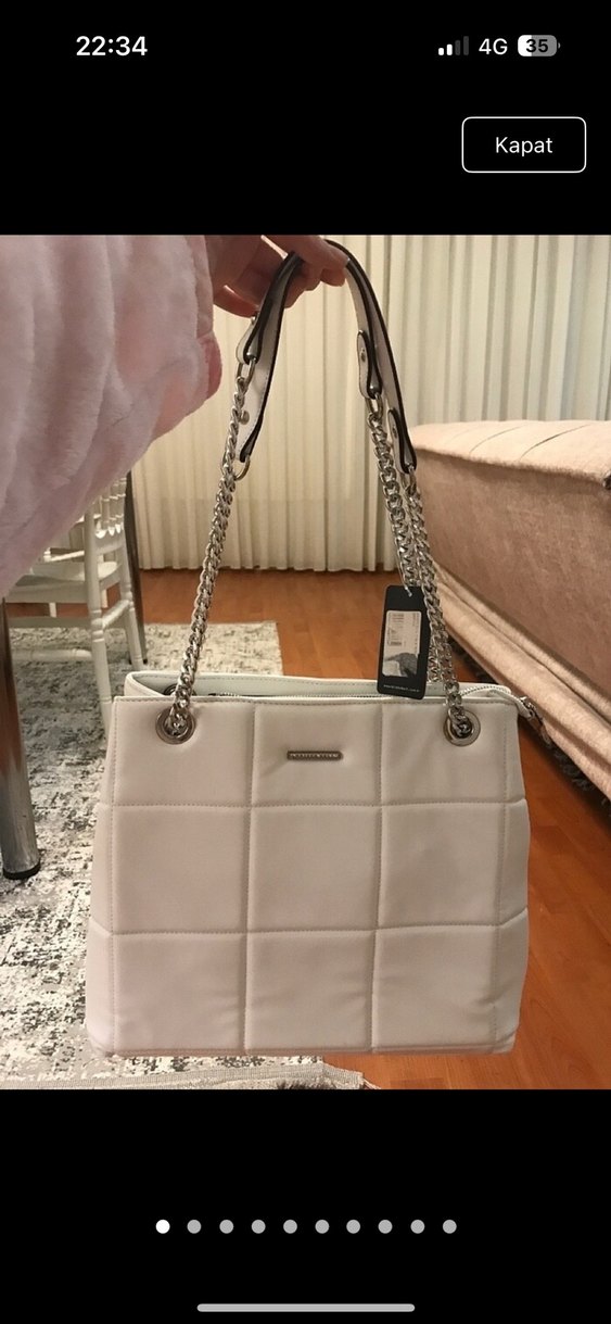 BeyaZ deri kadın çanta, zincir detaylı ve kareli dikişli tasarıma sahip, Paris tarzı günlük sokak giyimi için uygundur. Bu fiyata bu çanta kaçmaz son fiyat❤️