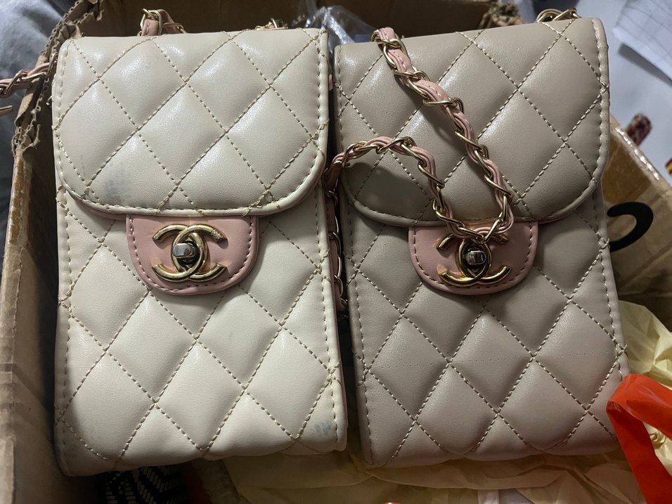 2 tane Zincir Detaylı Bej Deri Kadın Çanta